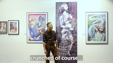 ERDEVEN DJESS au sujet de l'inspiration de la grande oeuvre "Snackkk'sss" © Vidéo Vincent Ripoll / HEY! modern art & pop culture